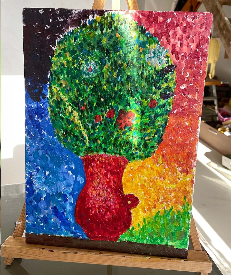 Мы с детьми рисуем с 2020 года. До рисования были другие занятия, связанные с визуальными искусствами, например, архитектурой с малышами, но мы рассказывали об этом раньше. Здесь мы опишем путь, который Забава прошла с того момента, когда стала практиковать акриловую живопись. Учитель у Забавы был тот же самый, что у Никиты, Анна Дайнеко. А результаты другие, и процесс другой. И это особенно интересно, если их сравнивать. Забава тяготеет к импрессионизму, на ней сильно сказался опыт рисования в стиле Клода Моне, временами ей нравятся пейзажи, мы бы сказали, она на них расслабляется, рисует "в потоке". Но иногда может взяться за новый для себя сюжет и неожиданный.