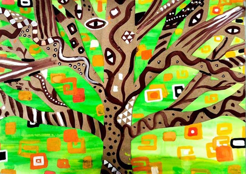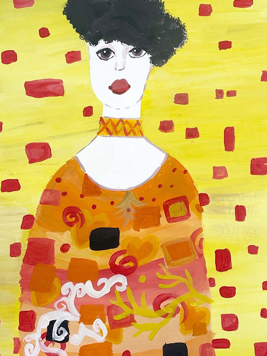 Работы Забавы Чистовой по мотивам Густава Климта. 2024. Чистова Забава. Бумага. Гуашь. Аппликация. Смешанная техника. 300х400 мм.