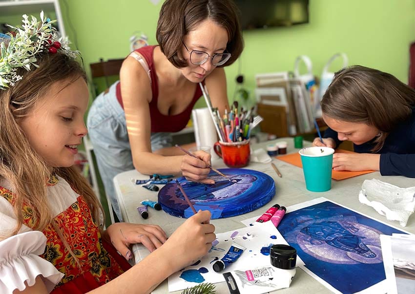 Забава на уроках рисования в студии Анны Дайнеко.