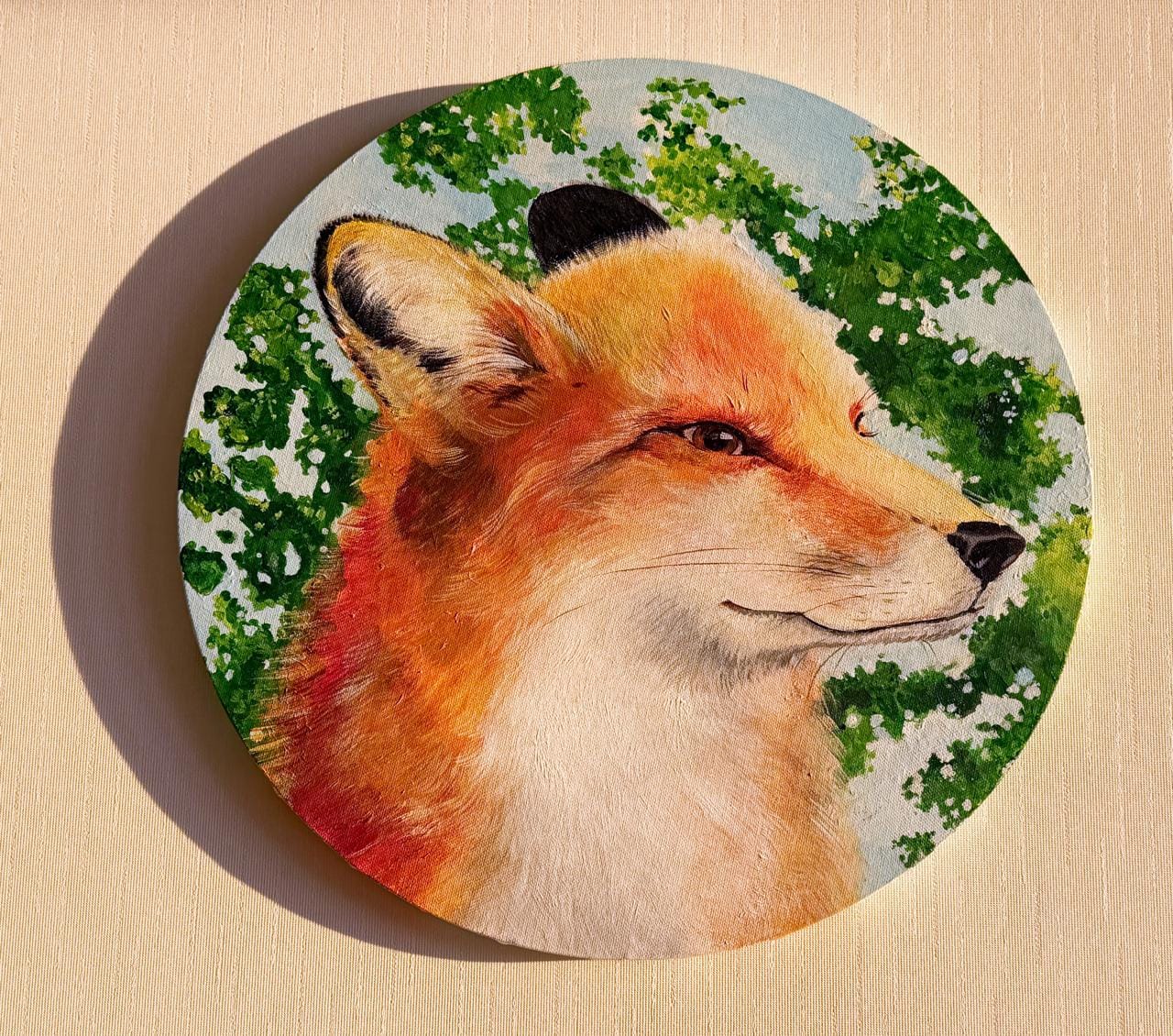 Лисица. Забава Чистова. 2025. Холст. Акрил, 500 мм. Картина уехала в Крым, в семью Романовых