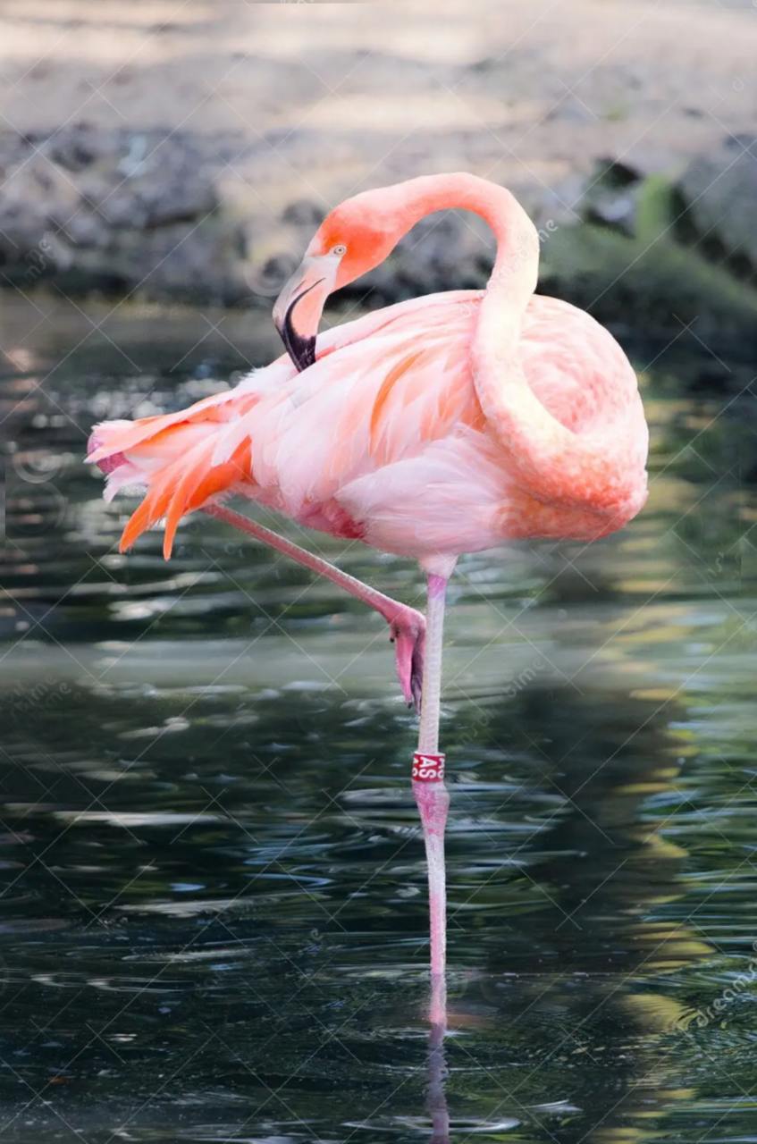 Забава рисовала фламинго по фото, но она изменила композицию, укрупнила птицу, изменила клюв (вытащила его из перьев) и переосмыслила задний план (вместо камней - зелень). В оригинале фламинго чистит перья. У Забавы фламинго красуется. Это типично для Забавы - уточнять композицию, вносить новые элементы, менять акценты.